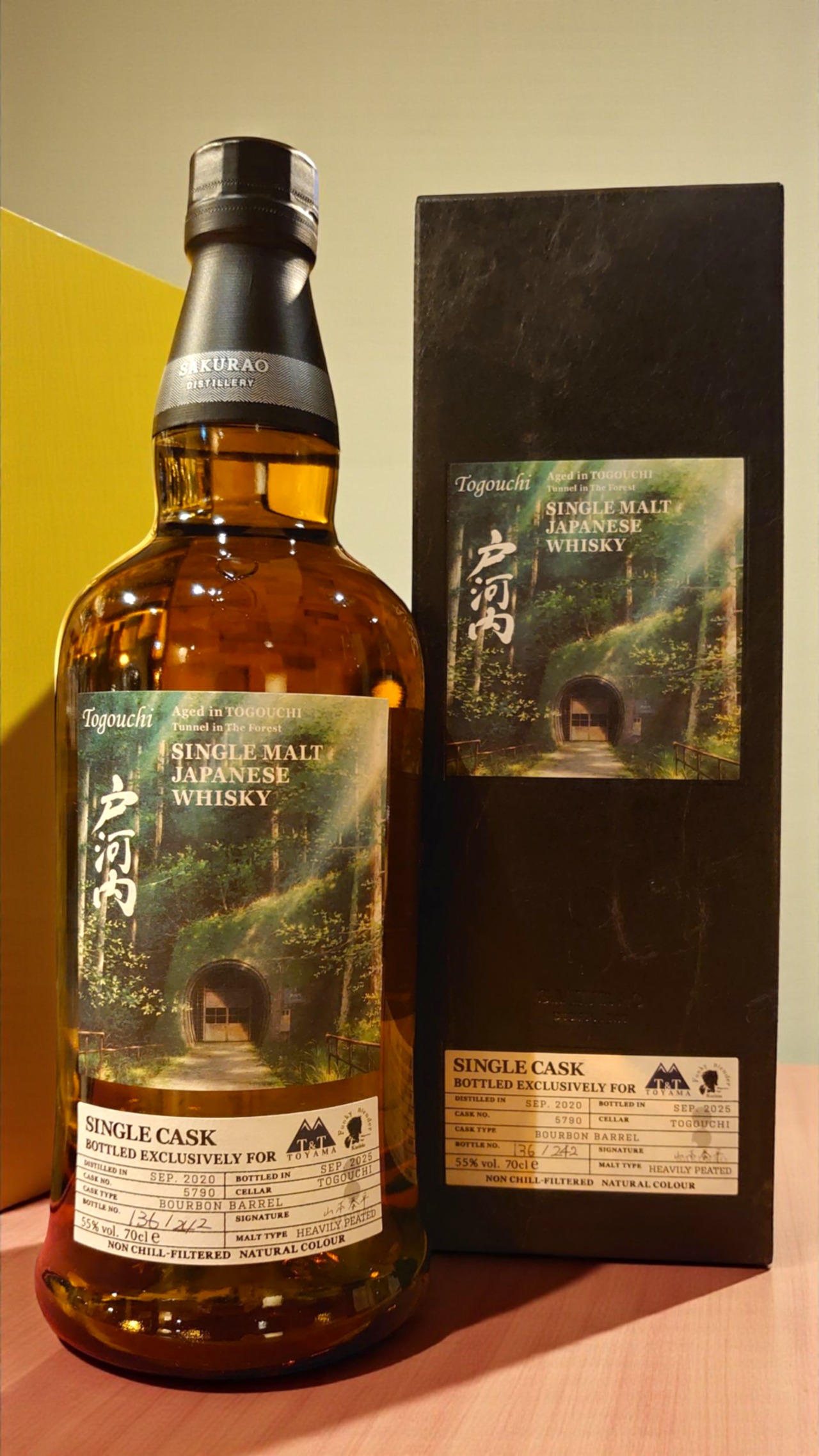 今回は広島・廿日市の桜尾蒸留所が手掛けるシングルモルト「戸河内」のシングルカスクです。戸河内は森林に囲まれた旧鉄道トンネルで静かに熟成を重ねることで知られ、その湿潤な環境が穏やかで柔らかな熟成感をもたらします。