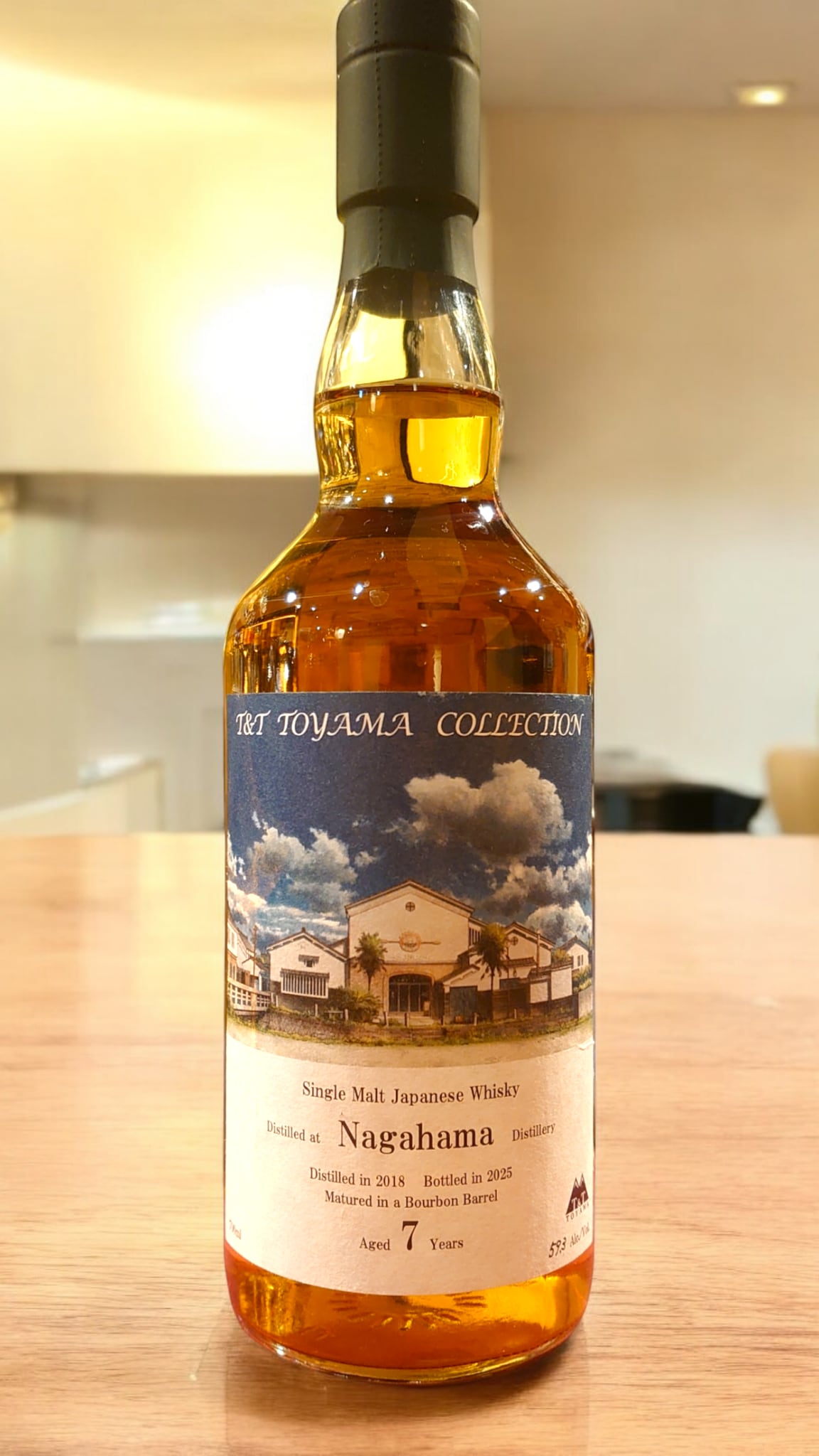 今回の長濱は、滋賀県の長濱蒸溜所で蒸留後、約4年間の熟成後、T&T TOYAMAが購入し、富山でさらに約3年3か月熟成を重ねたものです。合計で7年以上の熟成期間を経た、貴重な一本となります。