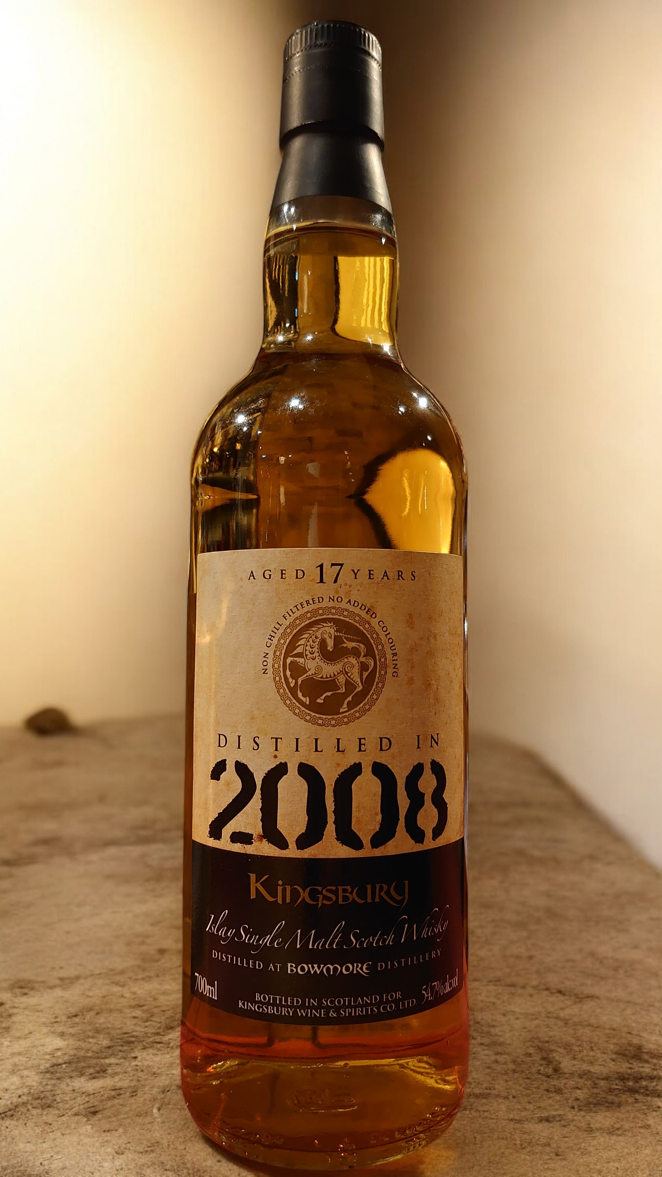 キングスバリー社の上位シリーズ〈ゴールド〉からリリースされた、ボウモア2008蒸溜・17年熟成のシングルモルト。厳選されたカスクのみをボトリングするゴールドシリーズにふさわしく、円熟へ向かう過程のボウモアの魅力を鮮やかに捉えた一本です。アルコール度数は54.7%のカスクストレングス、ノンチルフィルター・ノンカラー仕様。