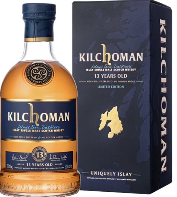 キルホーマン13年はアイラ島産のフェノール値50ppmというヘビーピーテッド麦芽を使用したシングルモルトで、13年熟成の特別限定商品です。バーボン樽(バレル・オクタブ)を主体に、一部カルバドス樽原酒を使用し、フルーティさとスモーキーさが絶妙に融合しています。