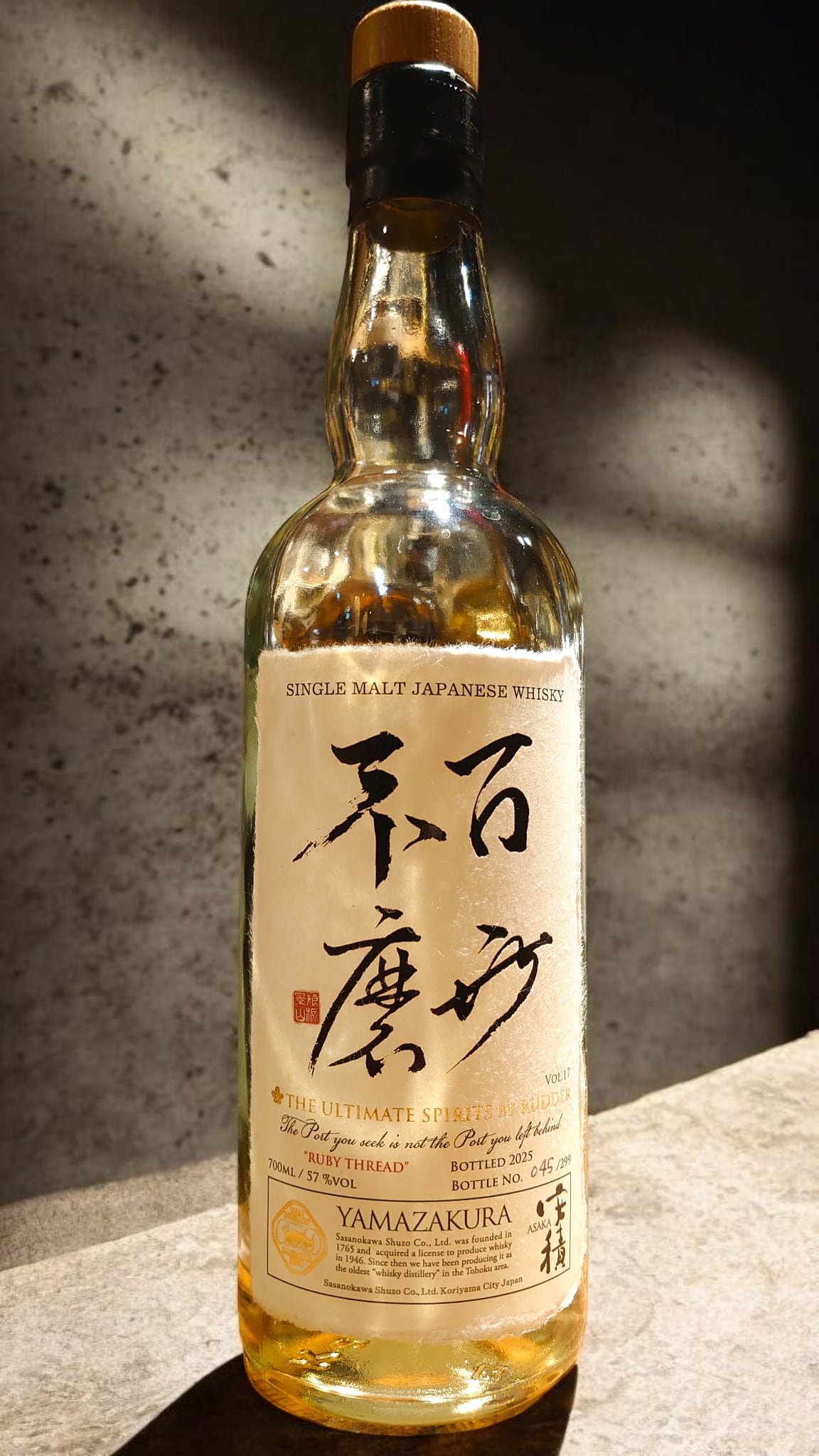 第17弾は、1765年創業の笹の川酒造より、ウィスキー免許を取得した山桜酒造の系譜に連なる安積蒸溜所の原酒。2019年蒸溜、1stフィルバレルで6年以上熟成させたノンピートとピーテッドの原酒をメインに、ある1つのキーモルトをブレンドすることによって、“RUBY THREAD(ルビー色の糸)”のタイトルにある赤い果実の長い糸を彷彿させる香味が生み出された。