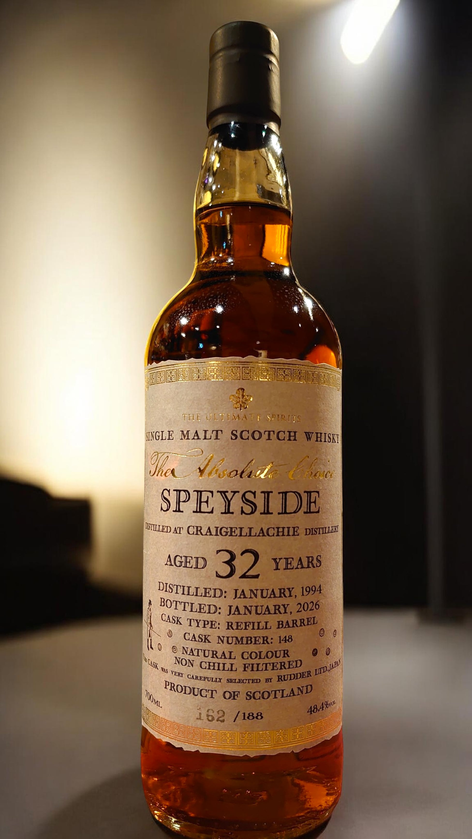 待望の第13弾は、 RUDDER LTD.がスコットランドのウェアハウスに保有するストックの中から、若き日にラガヴーリンでウイスキーを学んだピーター=マッキーとアレクサンダー=エドワードが1891年に設立したクライゲラヒ蒸溜所から、32年熟成を迎えた1樽を厳選。ボトラーズからの長期熟成は非常に珍しいと言えよう。32年の熟成が育んだ熟した果実の香味、古木系のウッディネスが複雑な熟成感をより引き立てる。ランシオ香の片鱗も僅かながらに感じられる長期熟成スぺイサイドの魅力を存分に備えた1本。