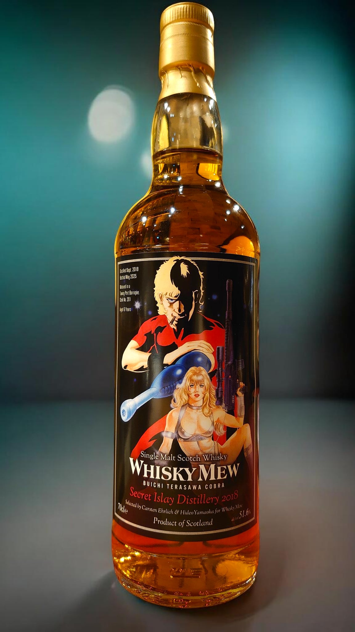 『コブラ』のラベルに、山岡秀雄が選んだウイスキーは、シークレットアイラ2018。蒸留所は非公開ですが、アイラ島南岸の「小さな岬」にあるアイラ屈指のピーティーなシングルモルトで知られる蒸留所です。